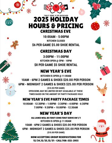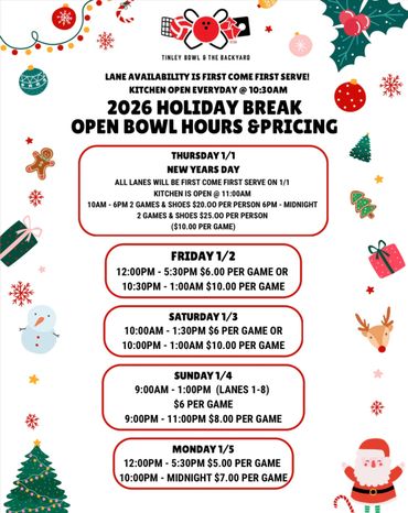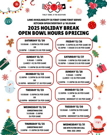 HOURS ARE SUBJECT TO CHANGE, PLEASE CALL FOR OPEN BOWL AVAILABILITY.